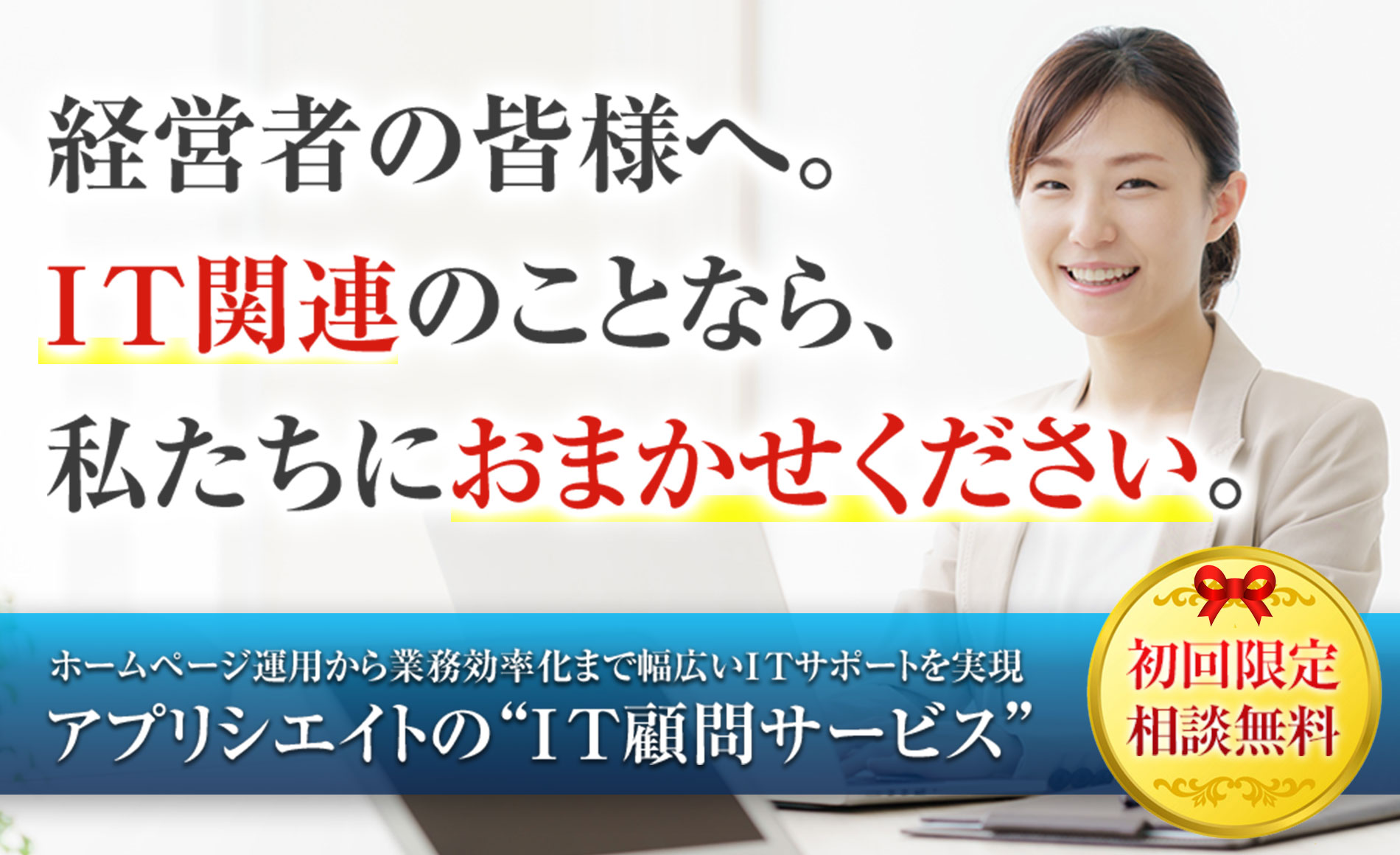 今後、経営に欠かすことのできないITについて専門のITコンサルタントが経営者のお悩みを解決いたします。
